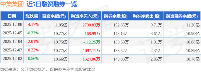 中集集团融资融券信息显示,融资方面,当日融资买入1.23亿元,融资偿还9479.33万元,融资净买入2790.83万元。融券方面,融券卖出10.47万股,融券偿还7600.0股,融券余量152.85万股,融券余额1452.11万元。融资融券余额11.2亿元。