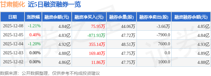 证券之星消息,截至2025年12月8日收盘,甘肃能化(000552)报收于2.45元,下跌1.21%,换手率1.29%,成交量48.06万手,成交额1.18亿元。