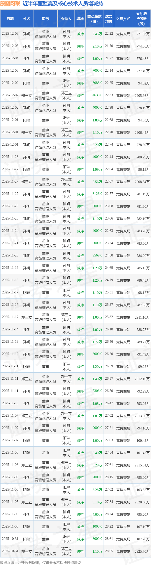 殷图网联近半年内的董监高及核心技术人员增减持详情如下: