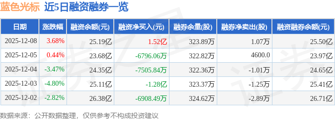 蓝色光标融资融券信息显示,融资方面,当日融资买入6.82亿元,融资偿还5.31亿元,融资净买入1.52亿元。融券方面,融券卖出7.36万股,融券偿还6.29万股,融券余量323.89万股,融券余额3099.67万元。融资融券余额25.5亿元。