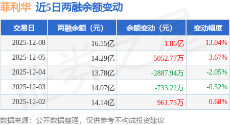 证券之星消息,12月8日,菲利华(300395)融资买入4.26亿元,融资偿还2.4亿元,融资净买入1.86亿元,融资余额16.04亿元,当日融资净买入排名第24。