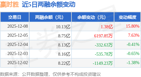 证券之星消息,12月8日,赢时胜(300377)融资买入4.34亿元,融资偿还2.96亿元,融资净买入1.38亿元,融资余额10.12亿元,当日融资净买入排名第34。