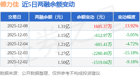 证券之星消息,12月8日,德力佳(603092)融资买入4117.0万元,融资偿还2511.63万元,融资净买入1605.37万元,融资余额1.31亿元,近20个交易日中有12个交易日出现融资净买入。
