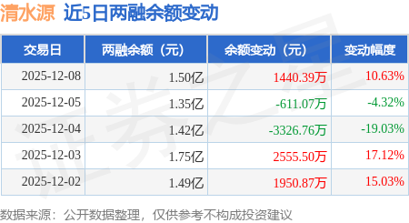 证券之星消息,12月8日,清水源(300437)融资买入6578.1万元,融资偿还5137.71万元,融资净买入1440.39万元,融资余额1.5亿元,近20个交易日中有11个交易日出现融资净买入。