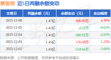 证券之星消息,12月8日,慧智微(688512)融资买入1309.15万元,融资偿还702.25万元,融资净买入606.9万元,融资余额1.47亿元。