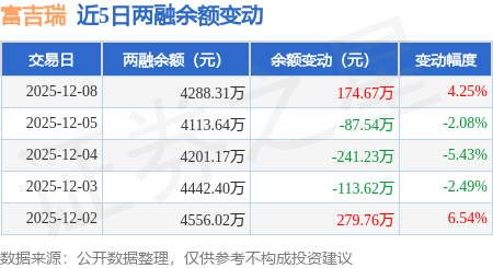 证券之星消息,12月8日,富吉瑞(688272)融资买入1485.58万元,融资偿还1310.91万元,融资净买入174.67万元,融资余额4288.31万元。