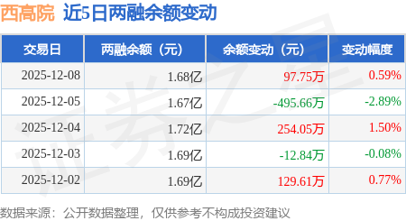 证券之星消息,12月8日,西高院(688334)融资买入1039.91万元,融资偿还942.16万元,融资净买入97.75万元,融资余额1.68亿元,近20个交易日中有13个交易日出现融资净买入。