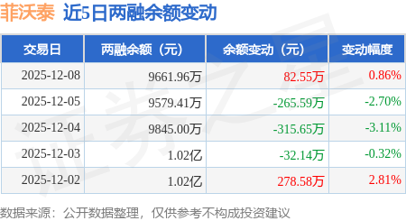 证券之星消息,12月8日,菲沃泰(688371)融资买入420.9万元,融资偿还338.35万元,融资净买入82.55万元,融资余额9661.96万元。