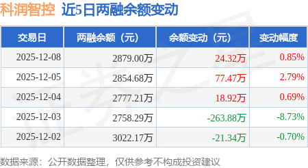 证券之星消息,12月8日,科润智控(920062)融资买入222.7万元,融资偿还198.38万元,融资净买入24.32万元,融资余额2879.0万元,近3个交易日已连续净买入累计120.71万元。