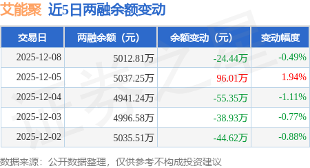 证券之星消息,12月8日,艾能聚(920770)融资买入201.1万元,融资偿还225.54万元,融资净卖出24.44万元,融资余额5012.81万元。