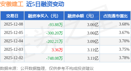 证券之星消息,12月8日,安徽建工(600502)融资买入1073.42万元,融资偿还1167.3万元,融资净卖出93.88万元,融资余额3.06亿元。