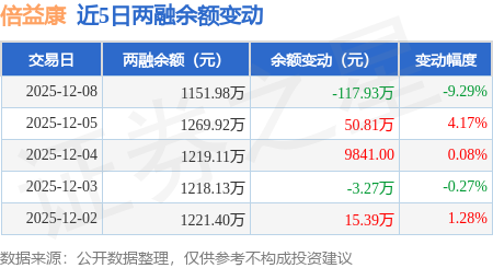 证券之星消息,12月8日,倍益康(920199)融资买入143.1万元,融资偿还261.03万元,融资净卖出117.93万元,融资余额1151.98万元。