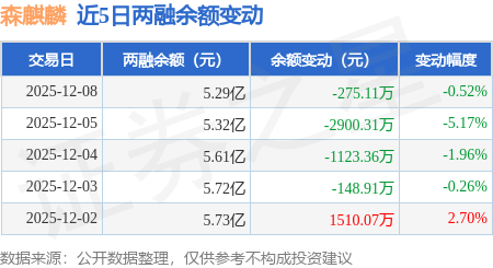 证券之星消息,12月8日,森麒麟(002984)融资买入3057.71万元,融资偿还3355.53万元,融资净卖出297.82万元,融资余额5.19亿元。