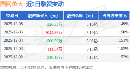 证券之星消息,12月8日,国网英大(600517)融资买入2521.13万元,融资偿还2847.66万元,融资净卖出326.53万元,融资余额5.16亿元。