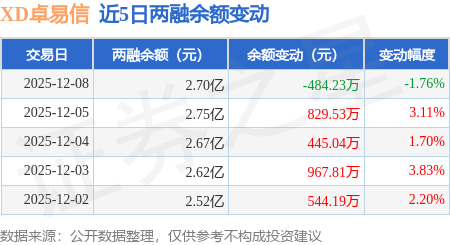 证券之星消息,12月8日,XD卓易信(688258)融资买入2038.55万元,融资偿还2522.78万元,融资净卖出484.23万元,融资余额2.7亿元,近20个交易日中有12个交易日出现融资净买入。