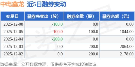 证券之星消息,12月8日,中电鑫龙(002298)融资买入3823.47万元,融资偿还4553.32万元,融资净卖出729.86万元,融资余额3.45亿元。