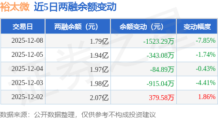 证券之星消息,12月8日,裕太微(688515)融资买入947.78万元,融资偿还2472.07万元,融资净卖出1524.29万元,融资余额1.78亿元。