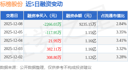 证券之星消息,12月8日,标榜股份(301181)融资买入2199.34万元,融资偿还4465.37万元,融资净卖出2266.03万元,融资余额9235.15万元,近20个交易日中有11个交易日出现融资净买入。