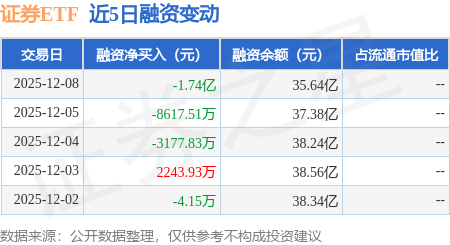 证券之星消息,12月8日,证券ETF(512880)融资买入5.09亿元,融资偿还6.83亿元,融资净卖出1.74亿元,融资余额35.64亿元。