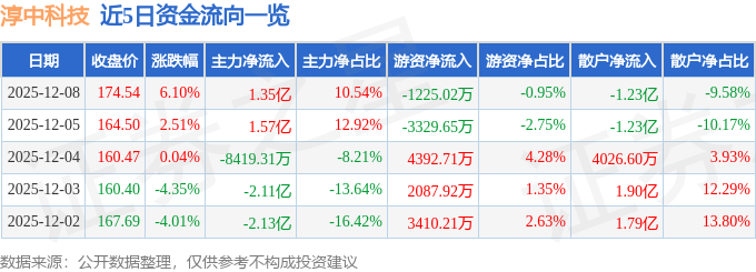 12月8日的资金流向数据方面,主力资金净流入1.35亿元,占总成交额10.54%,游资资金净流出1225.02万元,占总成交额0.95%,散户资金净流出1.23亿元,占总成交额9.58%。
