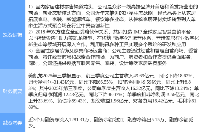 证券之星消息,美凯龙12月9日涨停收盘,收盘价2.79元。该股于14点37分涨停,未打开涨停,截止收盘封单资金为6181.47万元,占其流通市值0.61%。