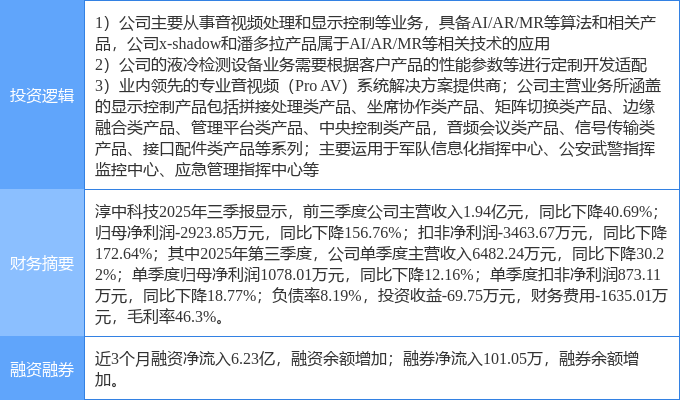 证券之星消息,淳中科技12月9日涨停收盘,收盘价191.99元。该股于14点35分涨停,1次打开涨停,截止收盘封单资金为8729.79万元,占其流通市值0.22%。