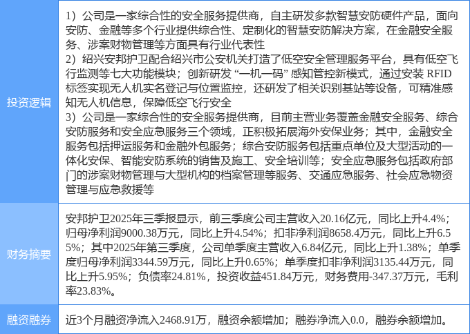 证券之星消息,安邦护卫12月9日涨停收盘,收盘价44.75元。该股于10点2分涨停,未打开涨停,截止收盘封单资金为3920.99万元,占其流通市值1.93%。