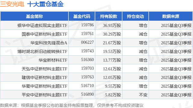 重仓三安光电的公募基金请见下表: