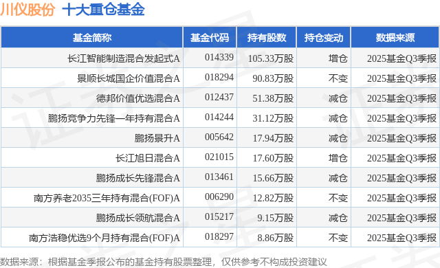 根据2025基金Q3季报公募基金重仓股数据,重仓该股的公募基金共15家,其中持有数量最多的公募基金为长江证券(上海)资管的长江智能制造混合发起式A。长江智能制造混合发起式A目前规模为3.41亿元,最新净值1.4319(12月8日),较上一交易日上涨0.3%,近一年上涨27.83%。该公募基金现任基金经理为施展。施展在任的基金产品包括:长江旭日混合A,管理时间为2024年7月24日至今,期间收益率为41.39%。