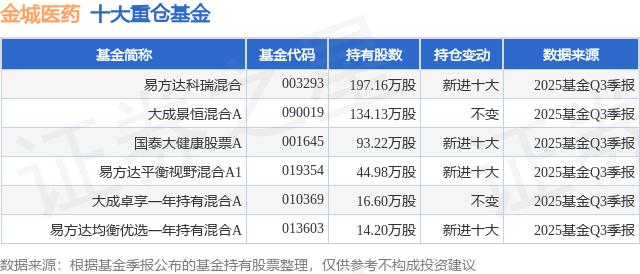 根据2025基金Q3季报公募基金重仓股数据,重仓该股的公募基金共6家,其中持有数量最多的公募基金为易方达基金的易方达科瑞混合。易方达科瑞混合目前规模为12.71亿元,最新净值2.1343(12月8日),较上一交易日上涨1.16%,近一年上涨23.78%。该公募基金现任基金经理为杨嘉文。杨嘉文在任的基金产品包括:易方达科汇灵活配置混合,管理时间为2019年11月28日至今,期间收益率为123.86%;易方达逆向投资混合A,管理时间为2021年4月1日至今,期间收益率为23.74%;易方达均衡优选一年持有混合A,管理时间为2022年5月26日至今,期间收益率为42.95%。
