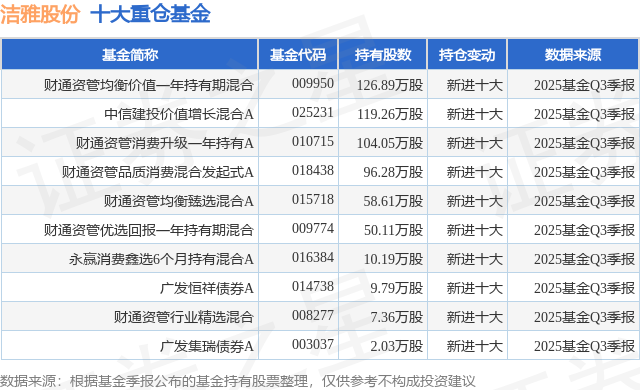 重仓洁雅股份的前十大公募基金请见下表: