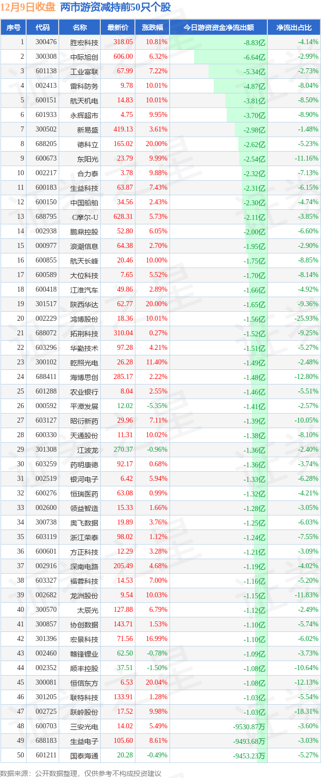 两市游资减持最多的前十只个股为: