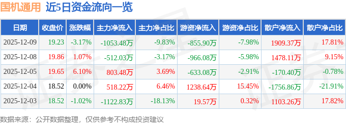 12月9日的资金流向数据方面,主力资金净流出1053.48万元,占总成交额9.83%,游资资金净流出855.9万元,占总成交额7.98%,散户资金净流入1909.37万元,占总成交额17.81%。