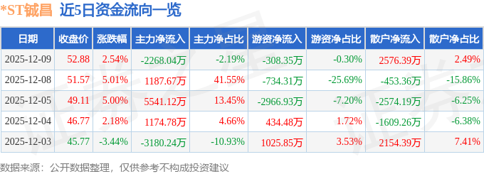 证券之星消息,截至2025年12月9日收盘,*ST铖昌(001270)报收于52.88元,上涨2.54%,换手率9.51%,成交量19.36万手,成交额10.37亿元。
