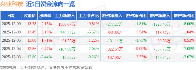 证券之星消息,截至2025年12月9日收盘,兴业科技(002674)报收于13.78元,上涨2.15%,换手率3.82%,成交量11.17万手,成交额1.53亿元。