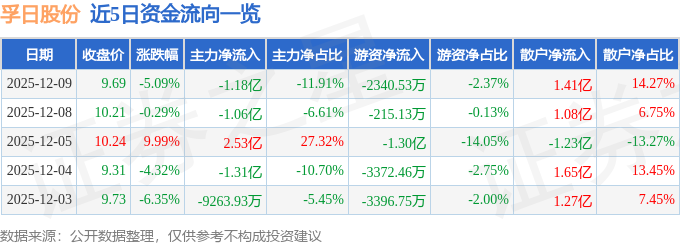 证券之星消息,截至2025年12月9日收盘,孚日股份(002083)报收于9.69元,下跌5.09%,换手率10.63%,成交量100.55万手,成交额9.88亿元。