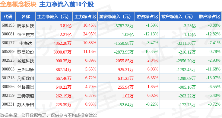 从资金流向上来看,当日全息概念板块主力资金净流出4.5亿元,游资资金净流入1.42亿元,散户资金净流入3.08亿元。全息概念板块个股资金流向见下表: