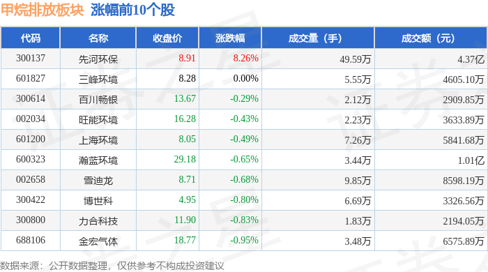 证券之星消息,12月9日甲烷排放板块较上一交易日下跌1.15%,华塑控股领跌。当日上证指数报收于3909.52,下跌0.37%。深证成指报收于13277.36,下跌0.39%。甲烷排放板块个股涨跌见下表: