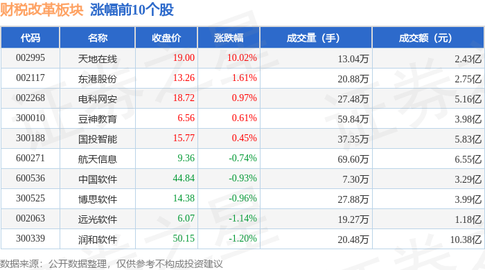 从资金流向上来看,当日财税改革板块主力资金净流出5.61亿元,游资资金净流出1.08亿元,散户资金净流入6.69亿元。财税改革板块个股资金流向见下表: