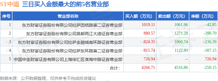 证券之星消息,沪深交易所2025年12月9日公布的交易公开信息显示,ST中迪(000609)因连续三个交易日内,跌幅偏离值累计达到12%的ST证券、*ST证券和未完成股改证券登上龙虎榜。此次是近5个交易日内第1次上榜。