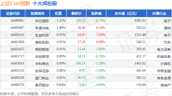 证券之星消息,12月9日,上证F300(000099)指数报收于8884.05点,跌0.8%,成交1357.56亿元,换手率1.3%。当日该指数成份股中,上涨的有49家,东阳光以9.99%的涨幅领涨,下跌的有244家,锦江酒店以5.95%的跌幅领跌。