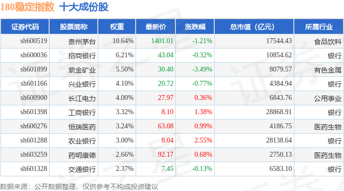 180稳定(000125)指数十大成份股详情如下: