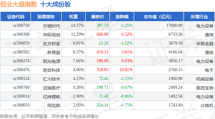 证券之星消息,12月9日,创业大盘(399293)指数报收于6569.29点,涨1.23%,成交1527.01亿元,换手率1.98%。当日该指数成份股中,上涨的有15家,胜宏科技以10.81%的涨幅领涨,下跌的有34家,长盈精密以3.8%的跌幅领跌。