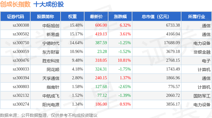 证券之星消息,12月9日,创成长(399296)指数报收于6321.21点,涨2.38%,成交1551.85亿元,换手率2.66%。当日该指数成份股中,上涨的有18家,胜宏科技以10.81%的涨幅领涨,下跌的有31家,金力永磁以4.01%的跌幅领跌。