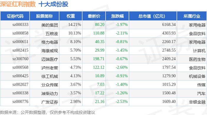深证红利(399324)指数十大成份股详情如下: