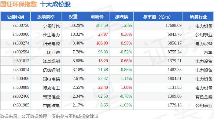 国证环保(399358)指数十大成份股详情如下: