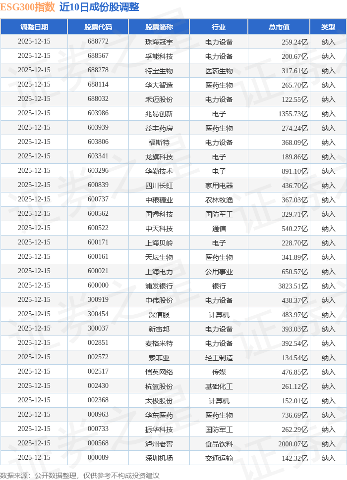 近10日内ESG300(399378)指数成份股做了调整,新纳入了30只股票。