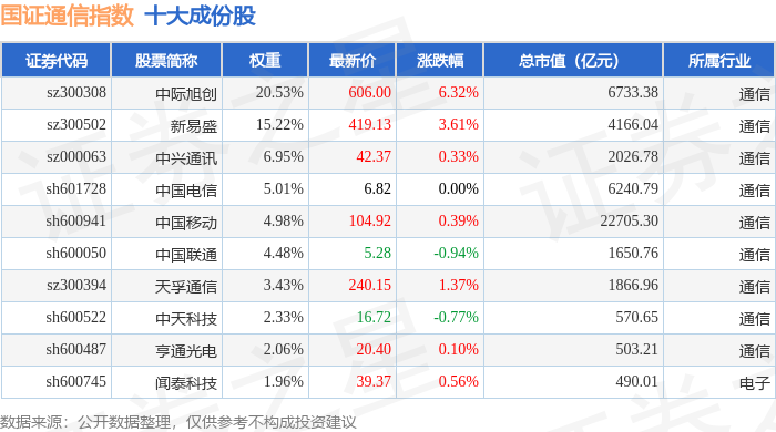 近10日内国证通信(399389)指数成份股做了调整,新纳入了5只股票。