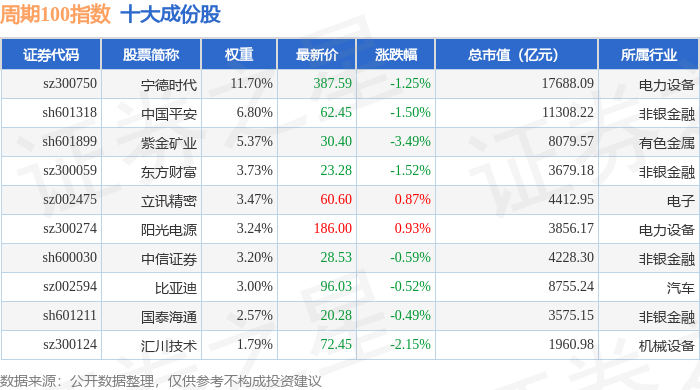 证券之星消息,12月9日,周期100(399402)指数报收于3726.53点,跌1.13%,成交1553.79亿元,换手率0.78%。当日该指数成份股中,上涨的有18家,生益科技以7.43%的涨幅领涨,下跌的有80家,洛阳钼业以6.1%的跌幅领跌。