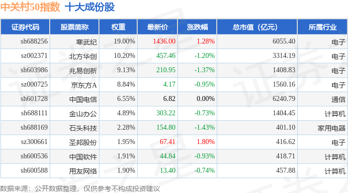 证券之星消息,12月9日,中关村50(399423)指数报收于3002.45点,跌0.38%,成交468.24亿元,换手率1.08%。当日该指数成份股中,上涨的有10家,新雷能以3.7%的涨幅领涨,下跌的有39家,亿华通以2.98%的跌幅领跌。